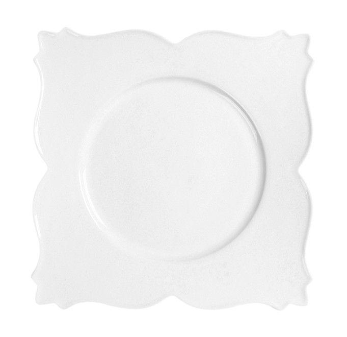 Vznosné barokní křivky porcelánu RAK linie WHITE GOLD s odkazem na tradici a historii.Rozměr talíře 34x34cm. Balení 12ks.