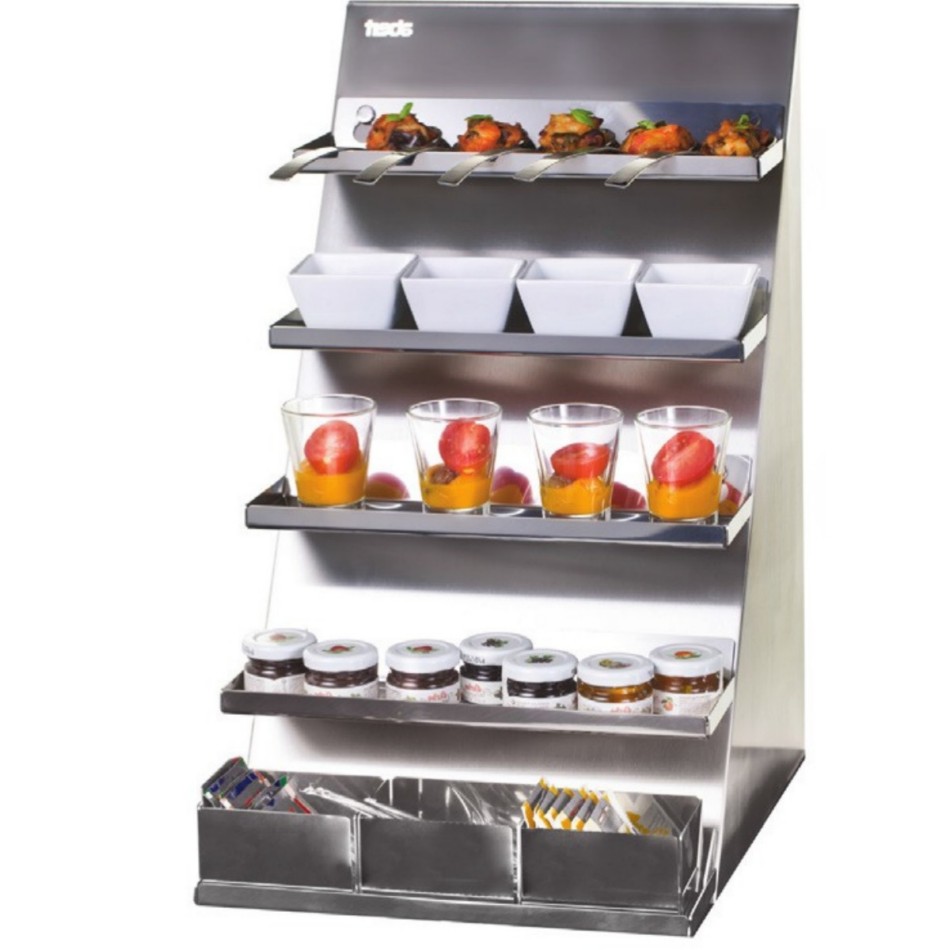 Bufetové stojany a etažéry jsou vhodné například na müsli, medy, oříšky, suché plody a ovoce. Nabízí elegantní řesení jak na relativně malém místě